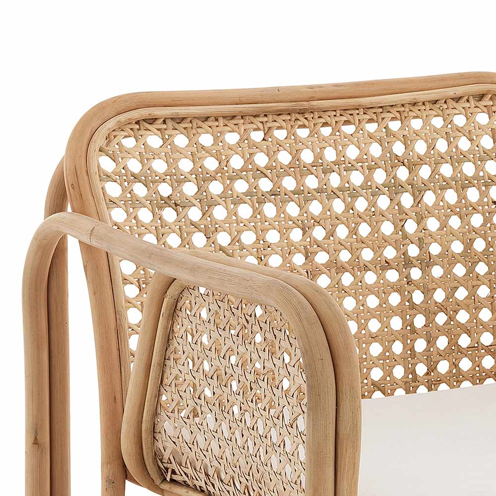 Dieser elegante und dennoch rustikale Sessel ist ideal, um Ihrem Außenbereich einen Hauch von Bohème-Stil zu verleihen. Auf jedes Detail, von den harmonischen Kurven des Geflechts bis hin zu den soliden Armlehnen, wurde Wert gelegt, um eine Atmosphäre der Wärme und Behaglichkeit zu schaffen. Ob in einer ruhigen Ecke auf Ihrer Terrasse oder in einer lebhaften, geselligen Umgebung, dieser Rattansessel ist der ideale Treffpunkt für alle, die zeitlose Eleganz und authentischen Komfort suchen.