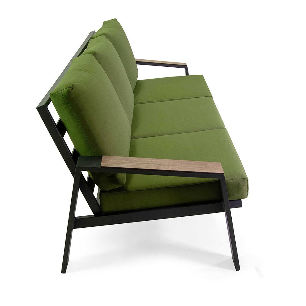 Dieses olivgrüne Aluminium Lounge Set , angereichert mit luxuriös gepolsterten Kissen , bietet eine frische und natürliche Atmosphäre für Ihren Außenbereich. Das Set besteht aus einem Dreisitzer-Sofa , zwei Einzelsesseln und einem robusten Kaffeetisch mit einer HPL-Platte in Holzoptik, perfekt, um eine elegante und einladende Gesprächsecke in Ihrem Garten oder auf Ihrer Terrasse zu schaffen. Das moderne Design mit klaren Linien und hellen Farben fügt sich perfekt in jeden Außenbereich ein und verleiht ihm einen Hauch von Stil und Komfort.