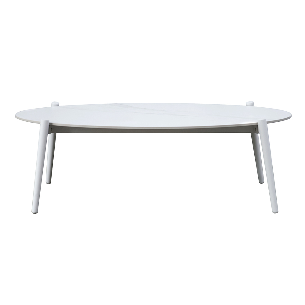 1 Couchtisch: Gestell aus Aluminium und Platte aus Steingut