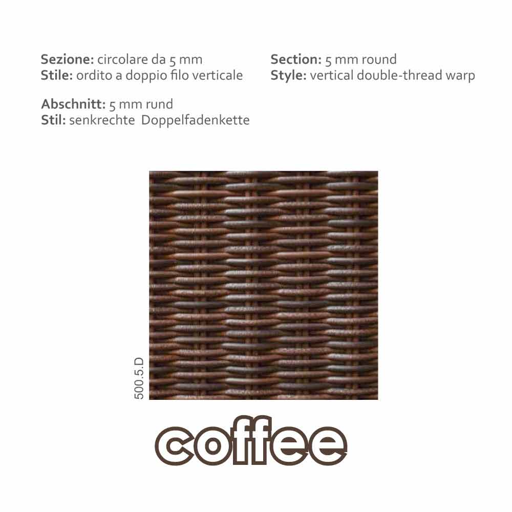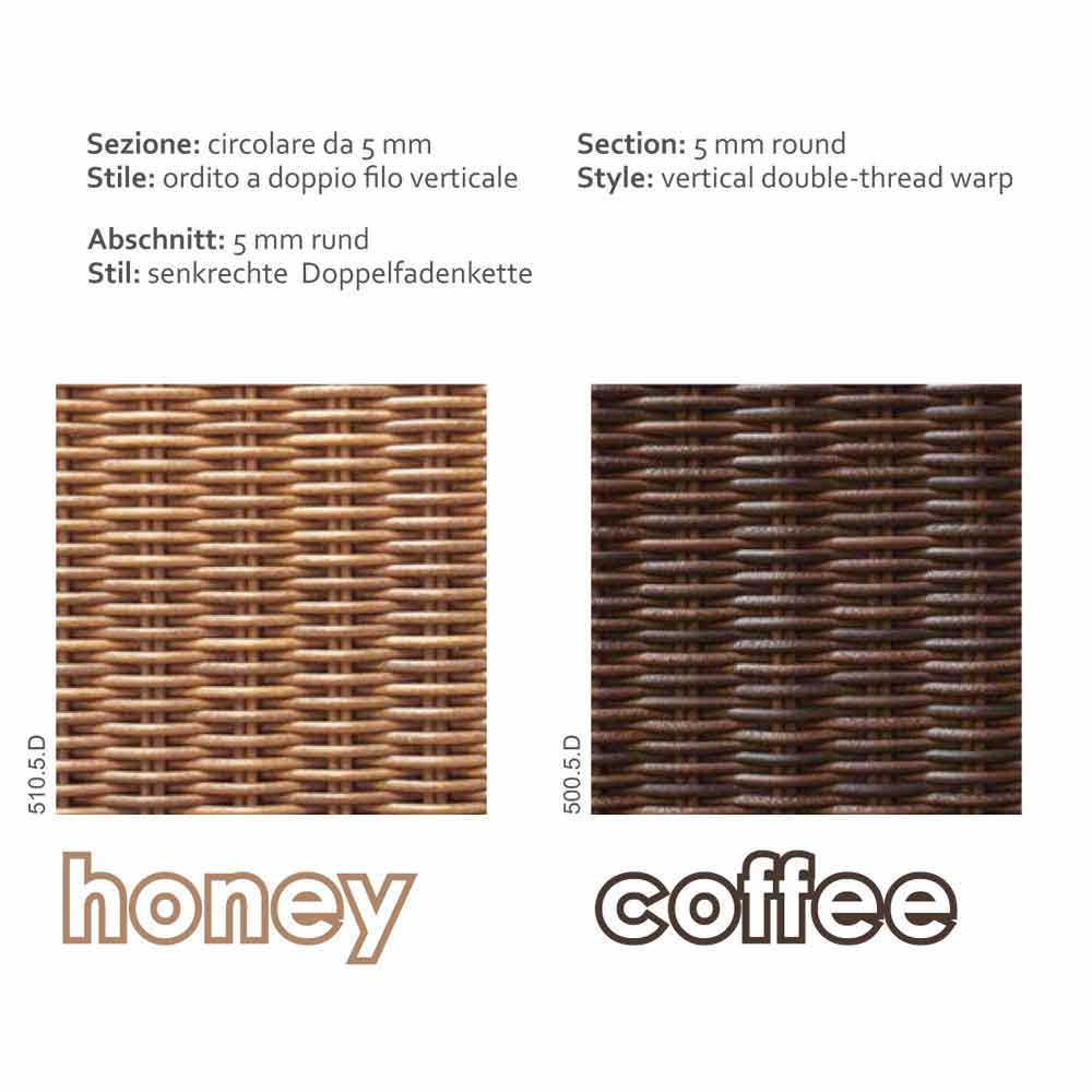 Die Polyrattan Struktur ist in Farbtönen erhältlich: Kaffeebraun und honigfarben.