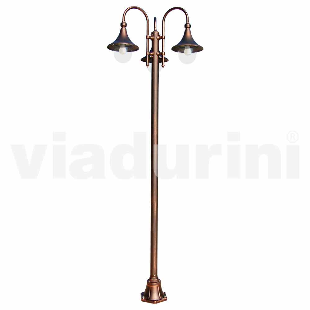 Anusca ist eine außergewöhnliche dreiflammige Gartenlampe, die in Handarbeit aus hochwertigen Materialien in Italien hergestellt wird: Struktur aus Aluminiumdruckguss und Diffusor aus Polycarbonat, erhältlich in den folgenden Varianten: transparent (garantiert eine optimale und stets homogene Lichtstreuung); opal und rauchig .