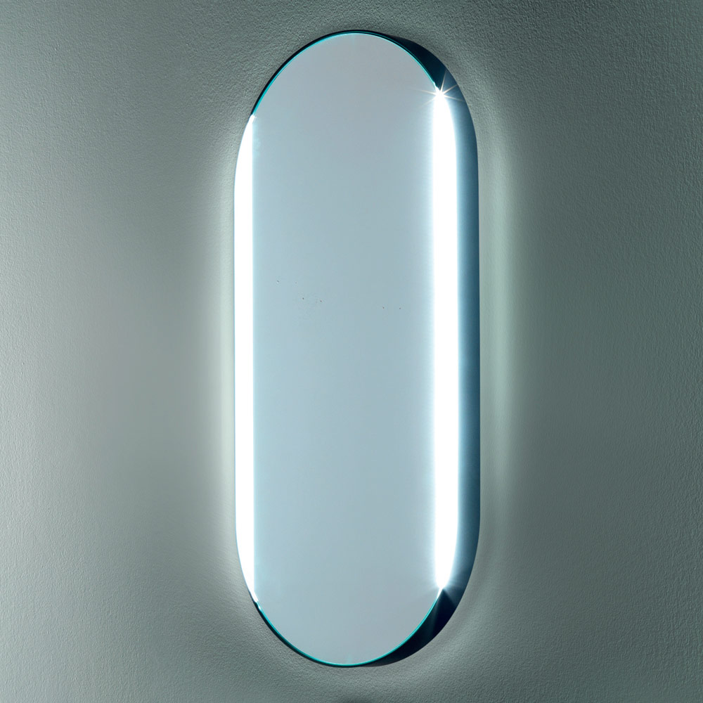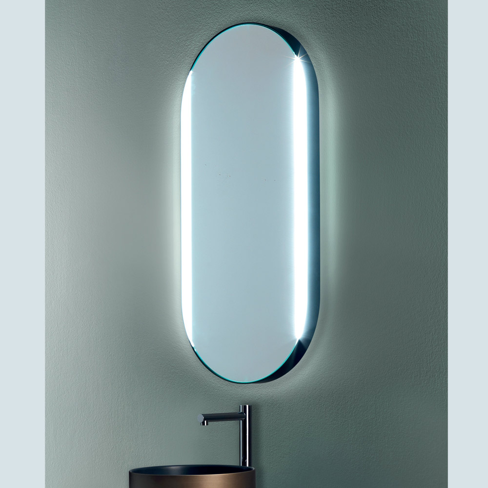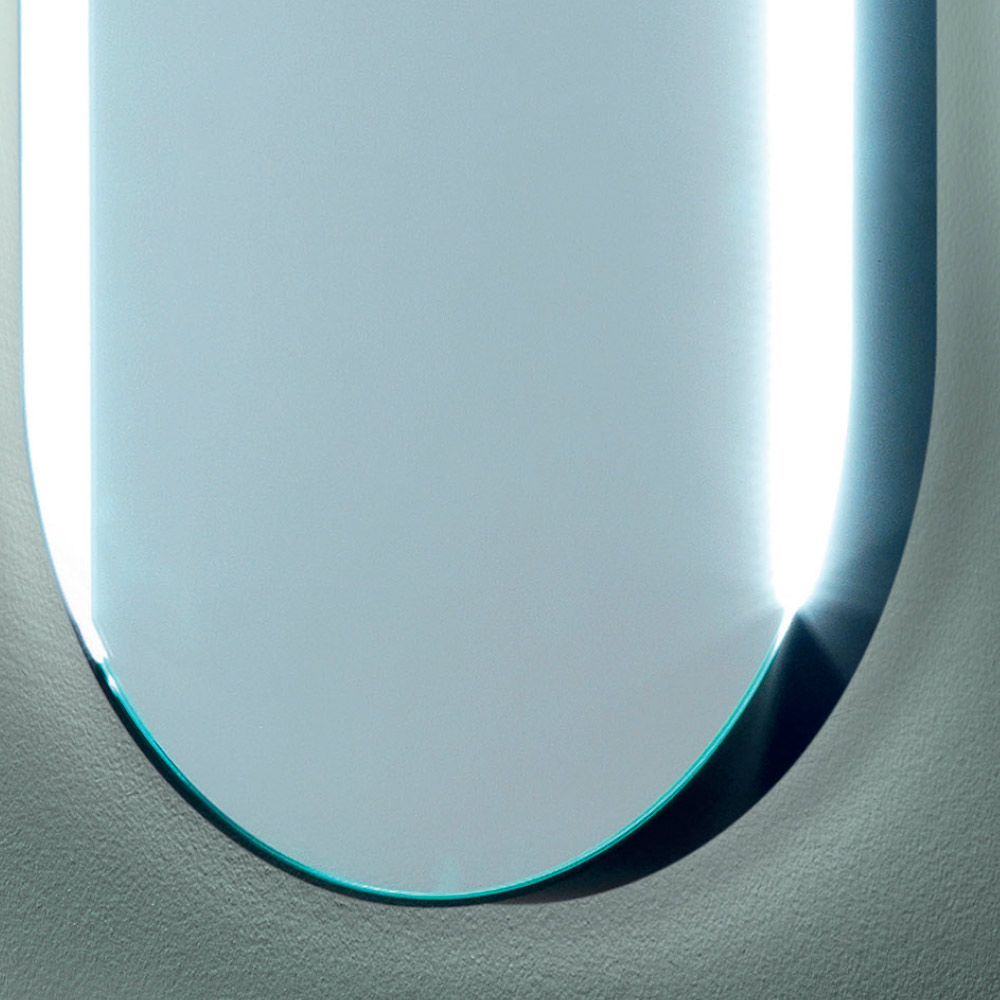 Entlang der Kante platzierte LED-Leuchten erzeugen eine Aura aus weichem Licht, die nicht nur eine visuelle Dimension, sondern auch eine praktische Funktion verleiht und sie ideal für Aufgaben macht, die eine optimale Beleuchtung erfordern, wie zum Beispiel das Auftragen von Make-up oder das Rasieren. Dieser Hauch von Helligkeit verwandelt jede Reflexion in ein Erlebnis von Luxus und Komfort .