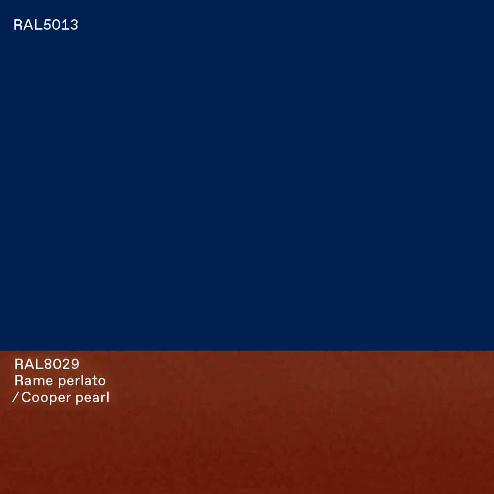 - Kobaltblaue Struktur RAL5013 + Unter- und Untergestelldetails in Perlkupfer RAL8029