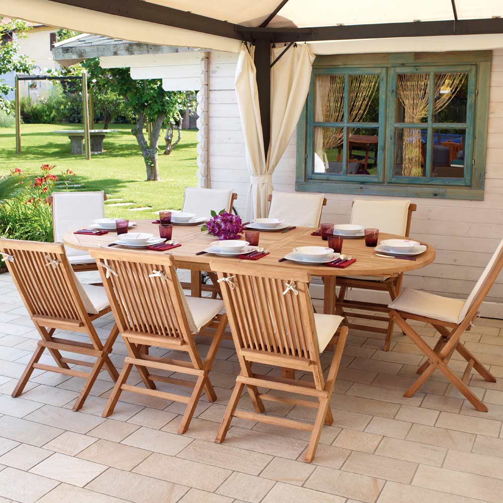 Ovaler Gartentisch ausziehbar auf 240 cm aus Teakholz - Ivy