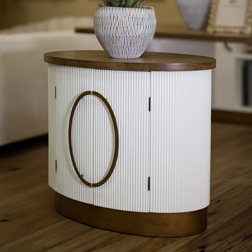 Ovaler Holzschrank mit Oberseite und abgerundeten Einsätzen mit 2 Türen - Rachel