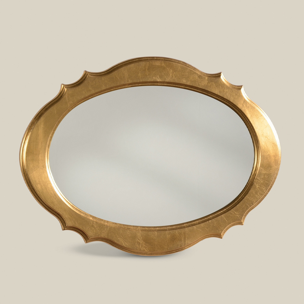 Ovaler Wandspiegel im klassischen Stil mit Rahmen aus Holz und mit elegantem Blattgold verziert , perfekt, um Ihren Wohnbereich mit Persönlichkeit und Geschmack zu dekorieren. Eine einzigartige und raffinierte Ergänzung, die vollständig in Italien von erfahrenen Handwerksmeistern hergestellt wird, Meister der Kunst, die jede Ergänzung mit Weisheit und Geschmack für Eleganz vervollständigen. Die Produktion erfolgt unter Verwendung hochwertiger Materialien und mit der größten Sorgfalt und Professionalität, die die Produkte Made in Italy auszeichnet .