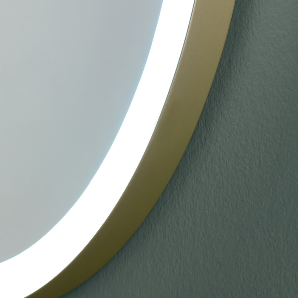 Entdecken Sie die Essenz integrierter Beleuchtung und modernem Design mit diesem ovalen Metallspiegel mit LED-Beleuchtung . Dieser Spiegel vereint Eleganz und technologische Innovation und ist eine raffinierte Ergänzung für jede Umgebung. Er bietet nicht nur Funktionalität, sondern auch einen auffälligen Stil.