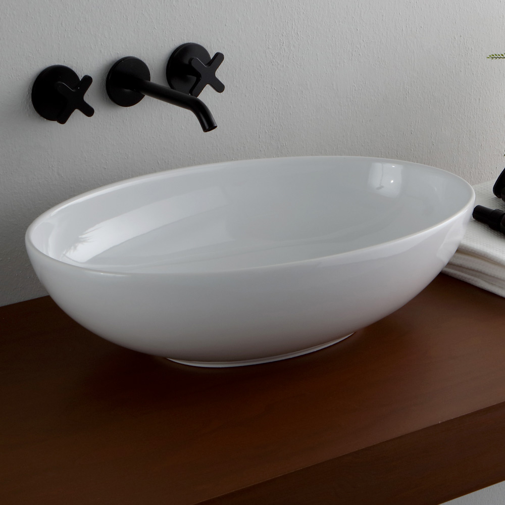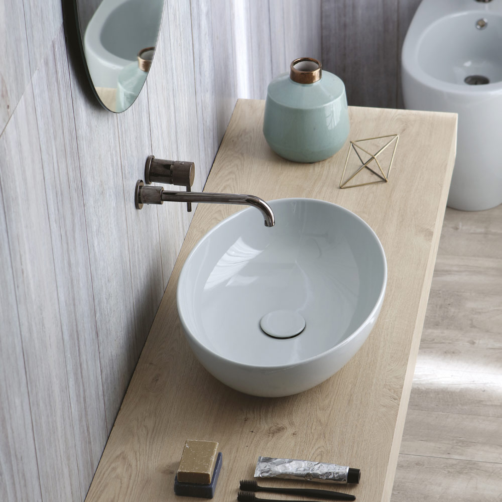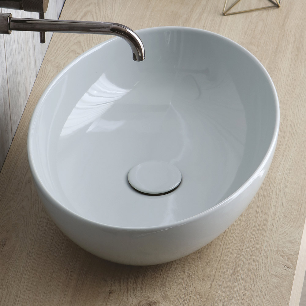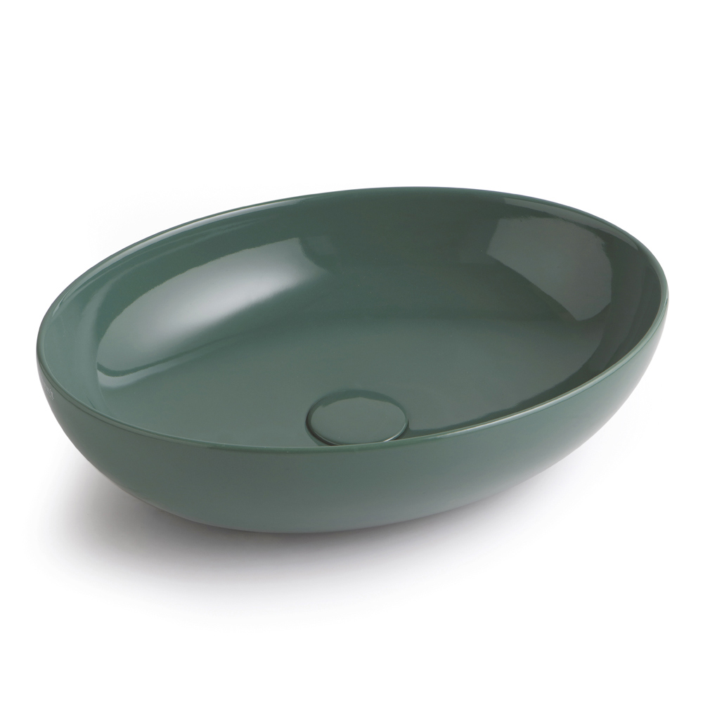 Ovales Aufsatzwaschbecken aus farbiger Keramik mit glänzender Oberfläche, hergestellt durch 100% Made in Italy Handwerkskunst . Ein Produkt mit modernem Geschmack und vielseitiger Ästhetik, das entworfen und entworfen wurde, um Badezimmerbereiche mit einem minimalistischen Stil einzurichten, in dem es den Look mit einem Hauch von Persönlichkeit und Charakter vervollständigt. Sein schlichtes Design und seine harmonische Linienführung passen sich jeder stilistischen Situation perfekt an, bereichern die umliegenden Möbel mit einer kreativen Note und werden so zum wahren Protagonisten des Raumes.