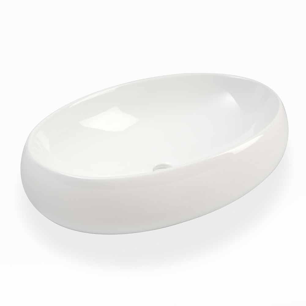 Ovales Aufsatzwaschbecken im modernen Stil, handgefertigt in Italien aus glänzender weißer Keramik.