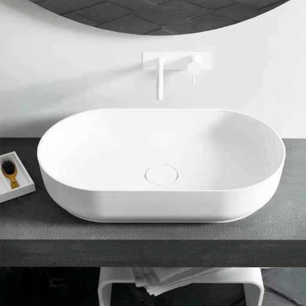 Dalmine ist ein freistehendes Waschbecken mit ovaler und weicher Form, ideal für moderne und minimalistische Umgebungen. Das Wasser scheint von den feinen und natürlichen Linien dieser Spüle zu streicheln.