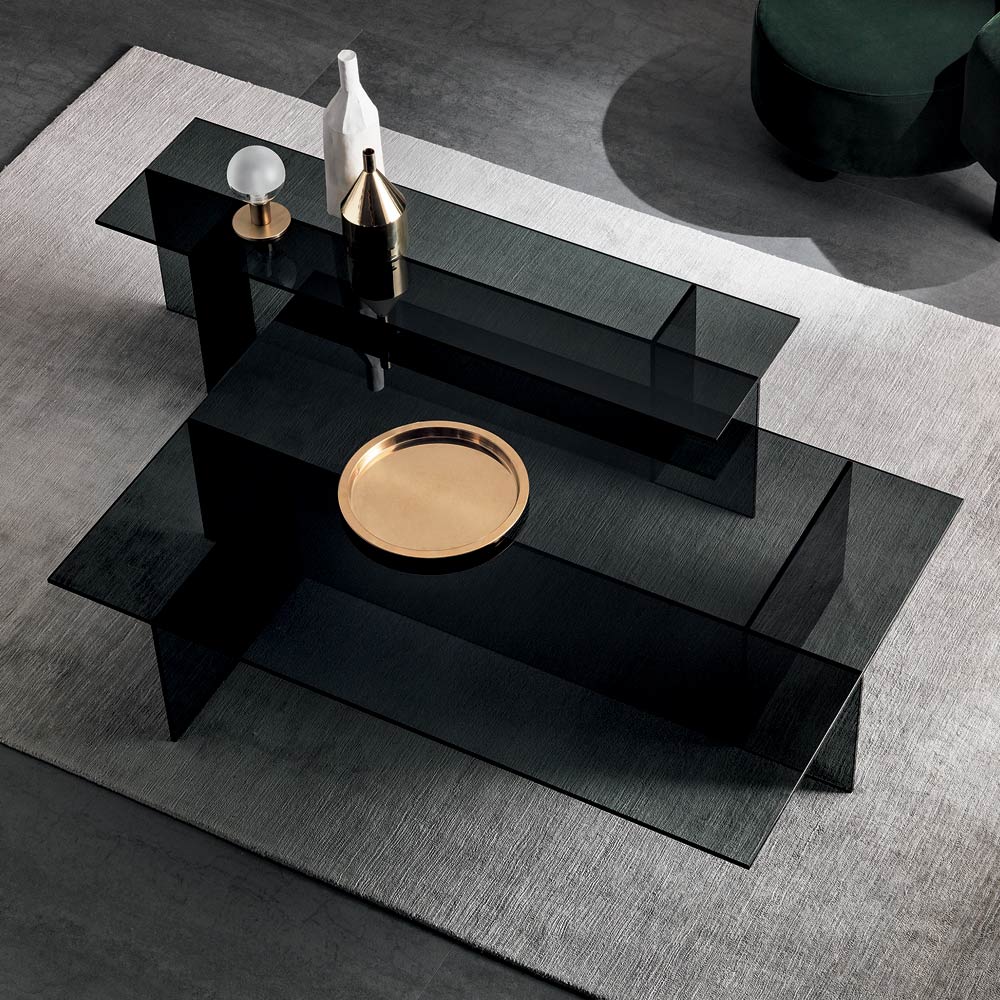 Sestola ist ein Couchtisch, der sich durch ein strenges und essentielles Design auszeichnet, bei dem zwei Tische in einem einzigen Tisch eine echte Skulptur bilden.