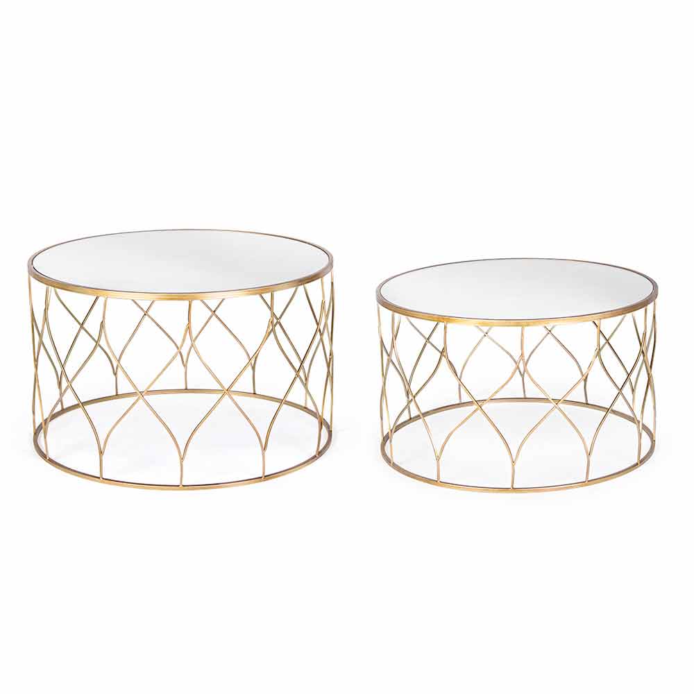 Paar runde Couchtische aus Glas und Stahl Homemotion - Amarillide