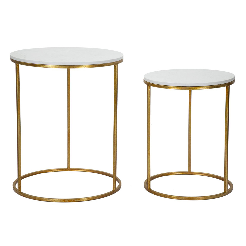 Couchtische mit goldfarbener Eisenstruktur und runder Platte aus
