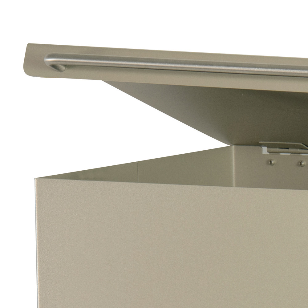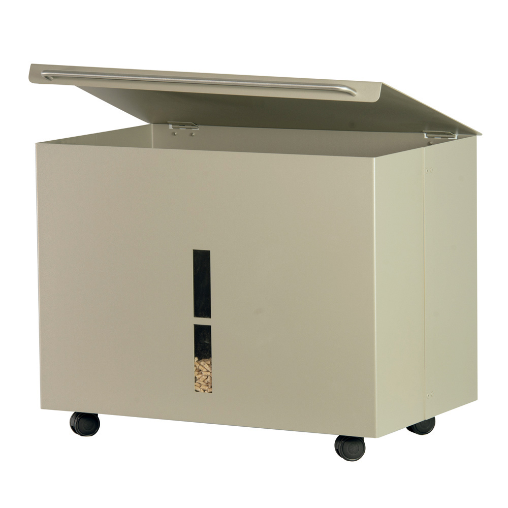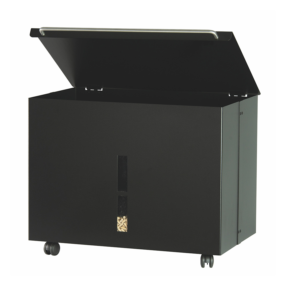 Der obere Deckel sorgt in Kombination mit einem schlanken Griff dafür, dass der Inhalt leicht zugänglich und vor Staub geschützt ist. Ein kleines Bullauge an der Vorderseite des Behälters setzt nicht nur einen interessanten optischen Akzent, sondern ermöglicht Ihnen auch die Überwachung des Pelletfüllstands, sodass Ihnen nie der Brennstoff ausgeht.