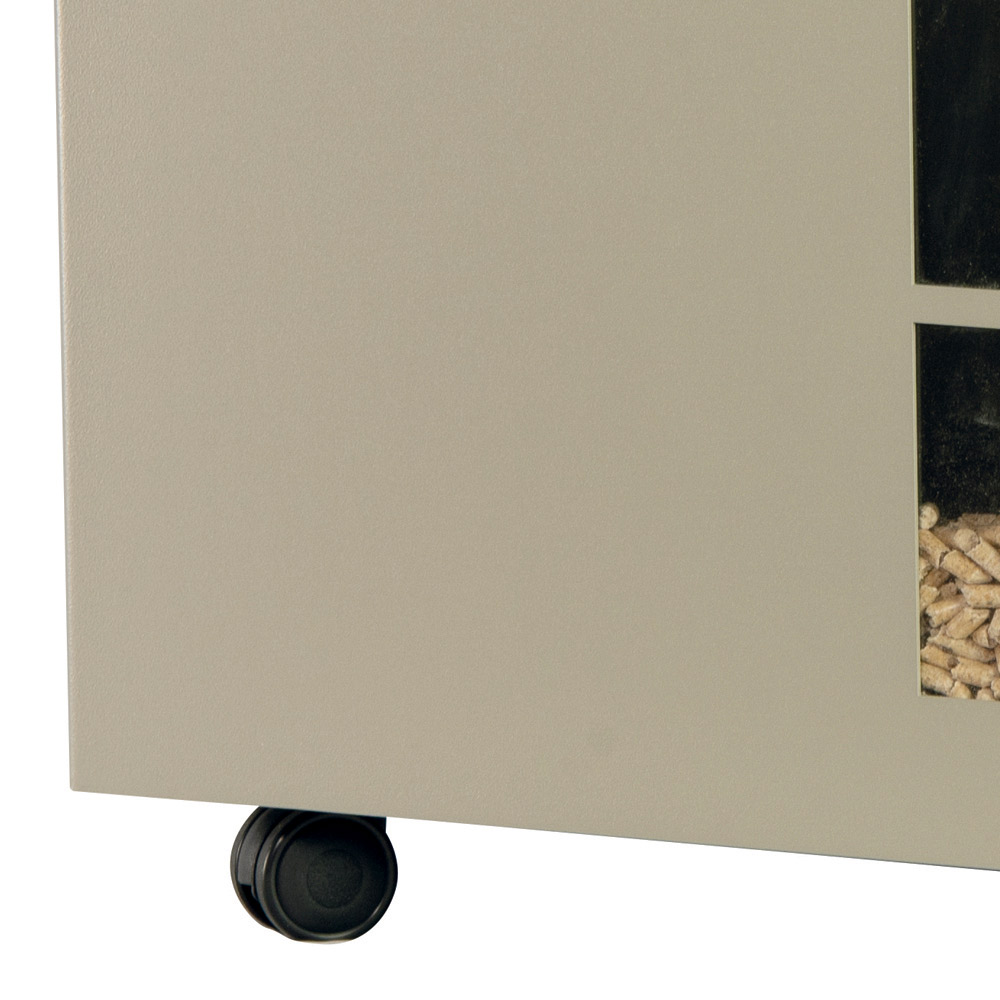 Ausgestattet mit Rädern lässt sich dieser Pellethalter leicht bewegen, sodass das Betanken Ihres Kamins oder Pelletofens immer eine einfache und mühelose Tätigkeit ist. Sein ebenso praktisches wie ansprechendes Design macht ihn zu einer perfekten Ergänzung für jede moderne und stilbewusste Umgebung.