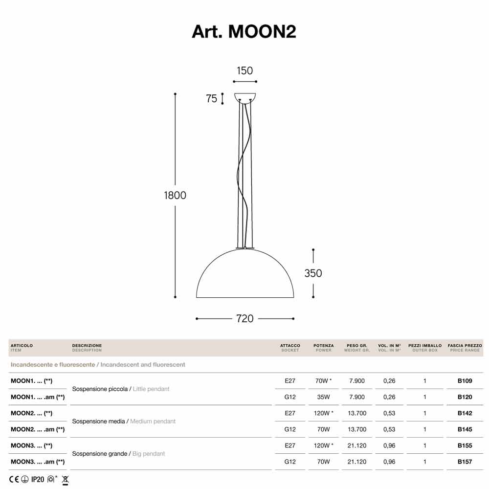 Dieser Artikel kann nicht in den USA verkauft werden. Moderne Design Pendelleuchte Moonlight aus Stahl von Aldo Bernardi, IP 20.