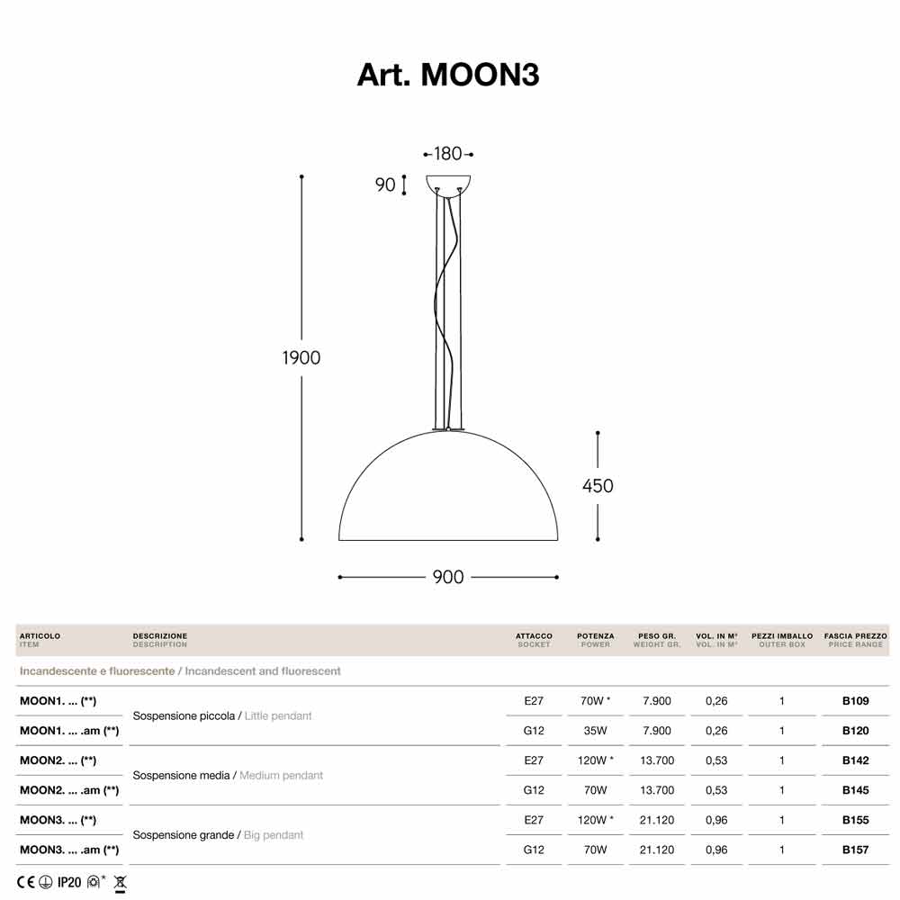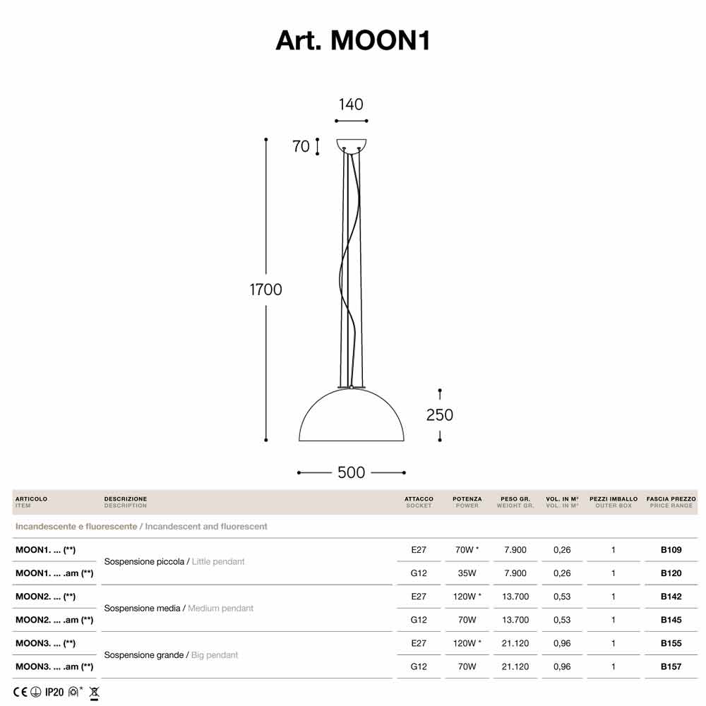 Moonlight ist in verschiedenen Größen (klein, mittel, groß) und in verschiedenen Farben erhältlich: - innen silber - innen gold - innen bronzefarben Glühbirne nicht enthalten