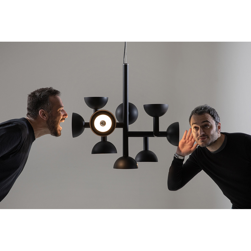 Die Leuchte besteht aus einer Aluminiumstruktur in zwei Ausführungen für ein ganz italienisches Design, das durch unkonventionelle Experimente und die kontinuierliche Suche zwischen Tradition und Moderne in der Lage ist, zu überraschen, zu wagen und zu begeistern, so dass Sie Ihre Emotionen auf originelle und persönliche Weise ausdrücken können dekorativer Lichteinsatz.