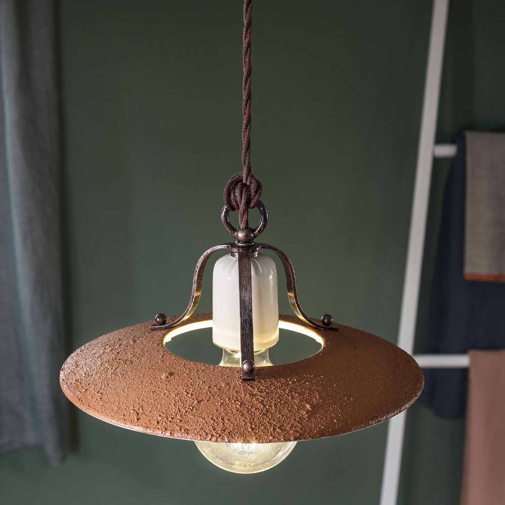 Hängelampe aus Eisen und handgefertigter Rohkeramik, 3 Größen, hergestellt in Italien von Ferroluce.