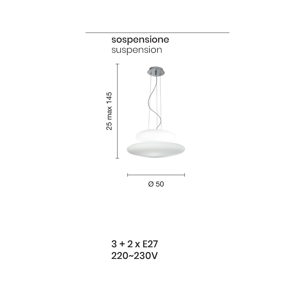 - Durchmesser 50 x H 25 cm - H max 145 cm (3 + 2 x E27 220-230V).