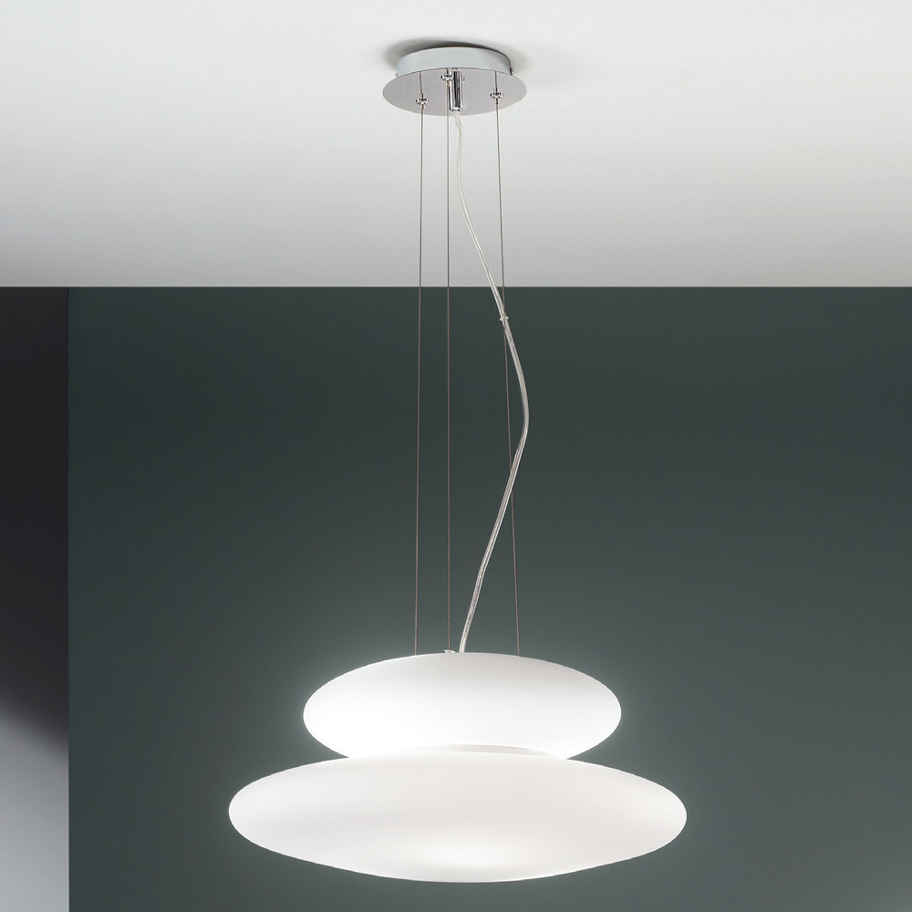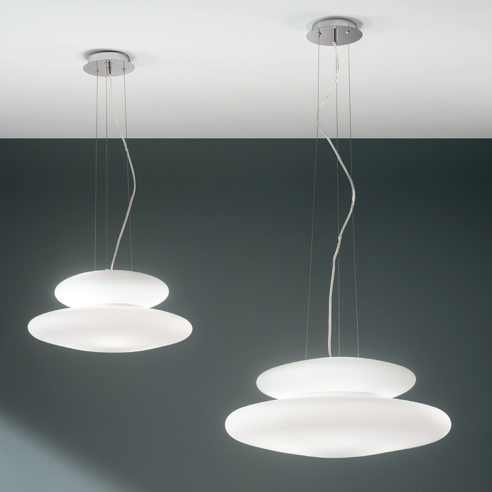 weißem Diffusor aus geblasenem geätztem Glas, komplett mit längenverstellbaren Kabeln. Ideal für diejenigen, die einen