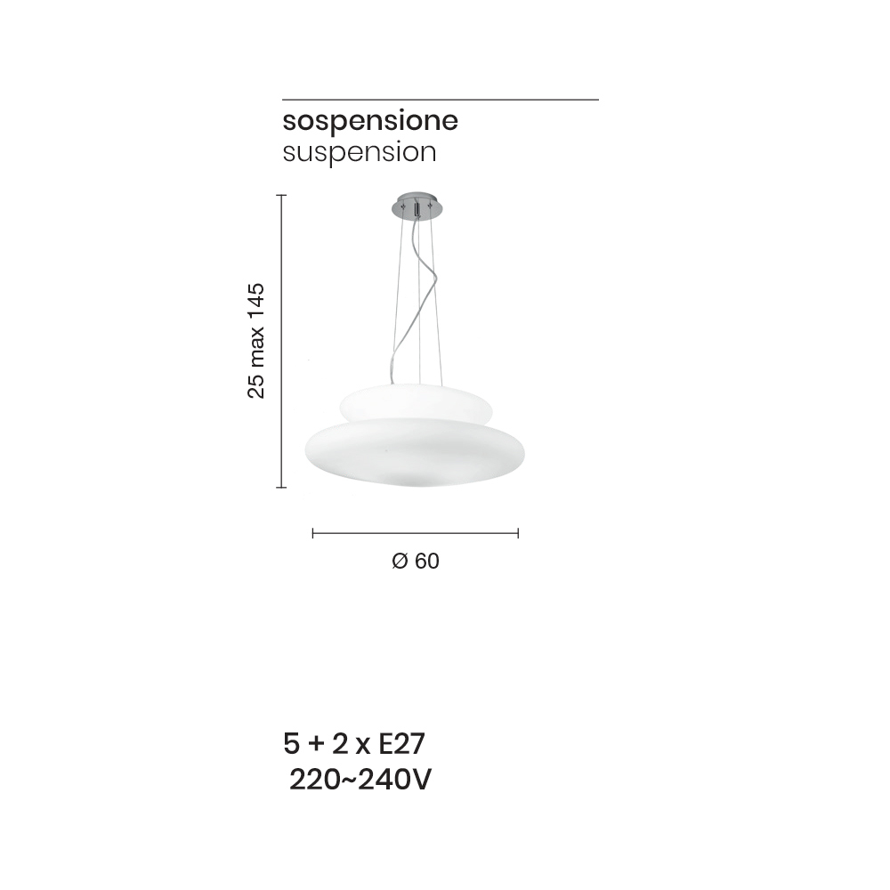 Verfügbare Größen:- Durchmesser 60 x H 25 cm - H max 145 cm (5 + 2 x E27 220-230V);