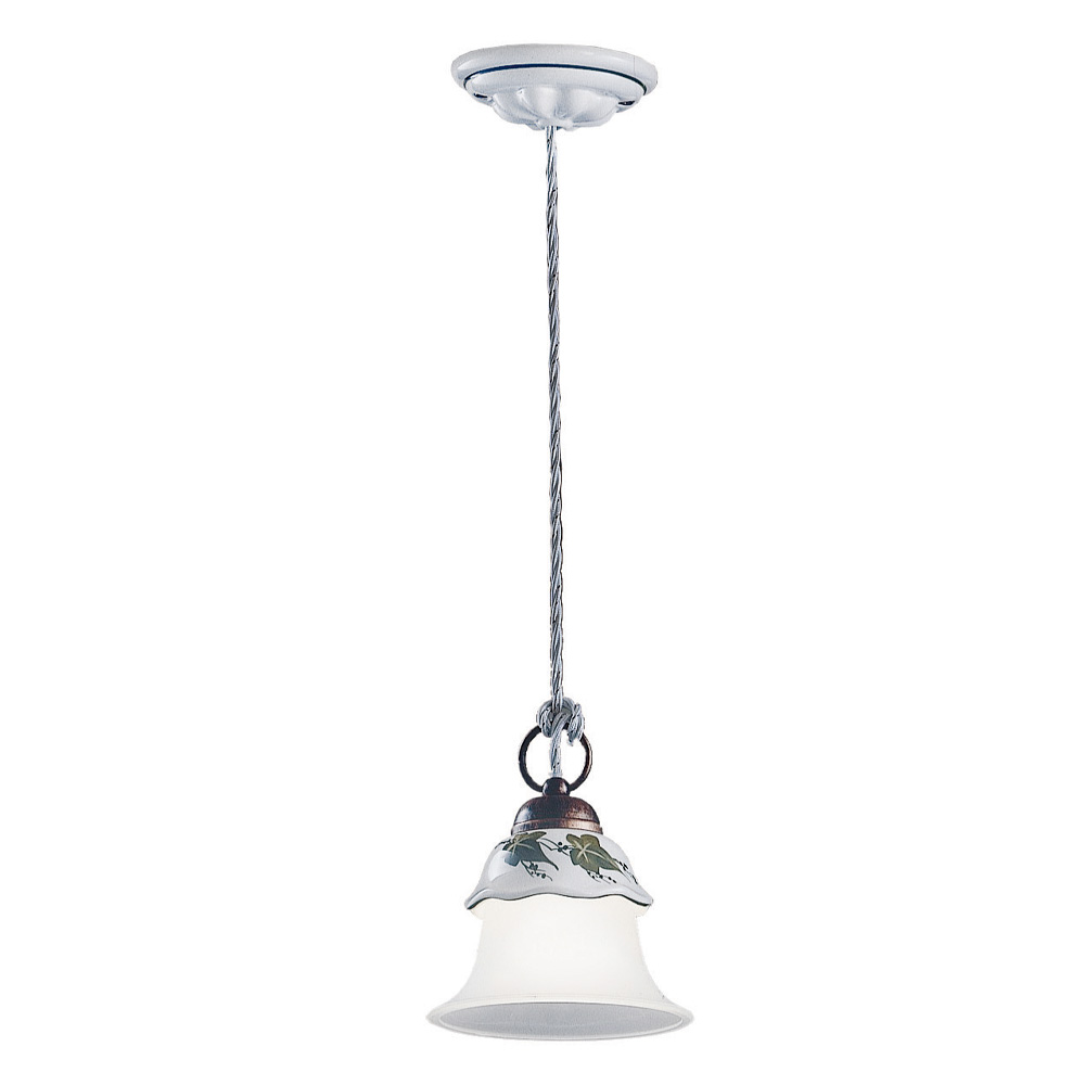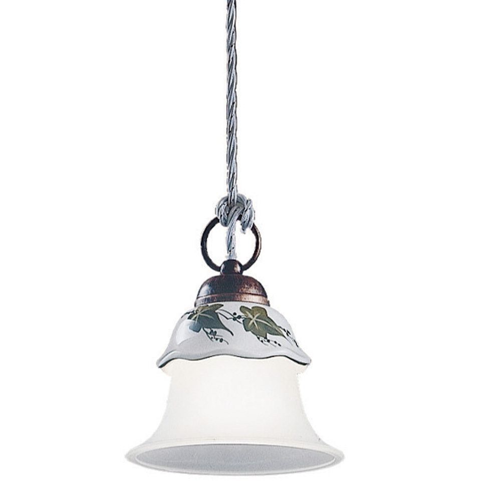 Hängelampe aus Eisen, handverzierter Keramik und geätztem Glas, hergestellt in Italien von Ferroluce.