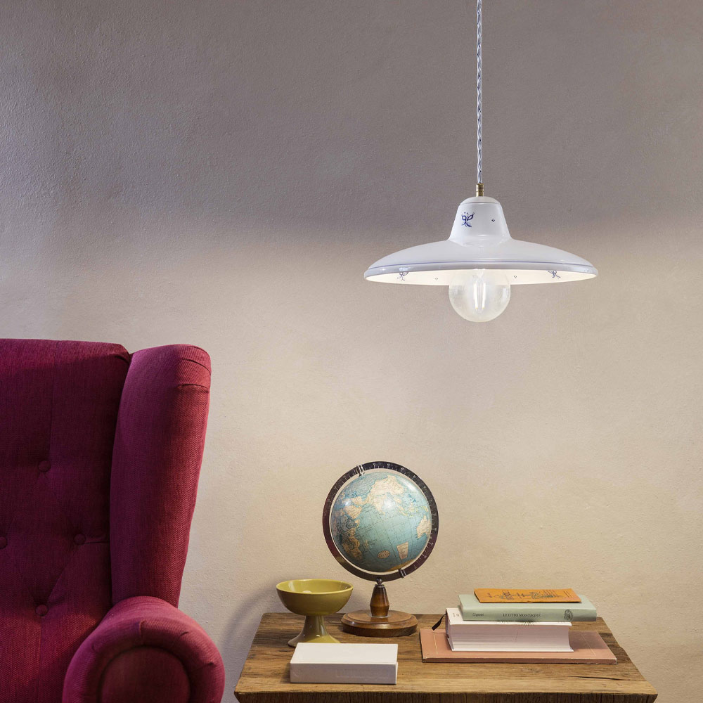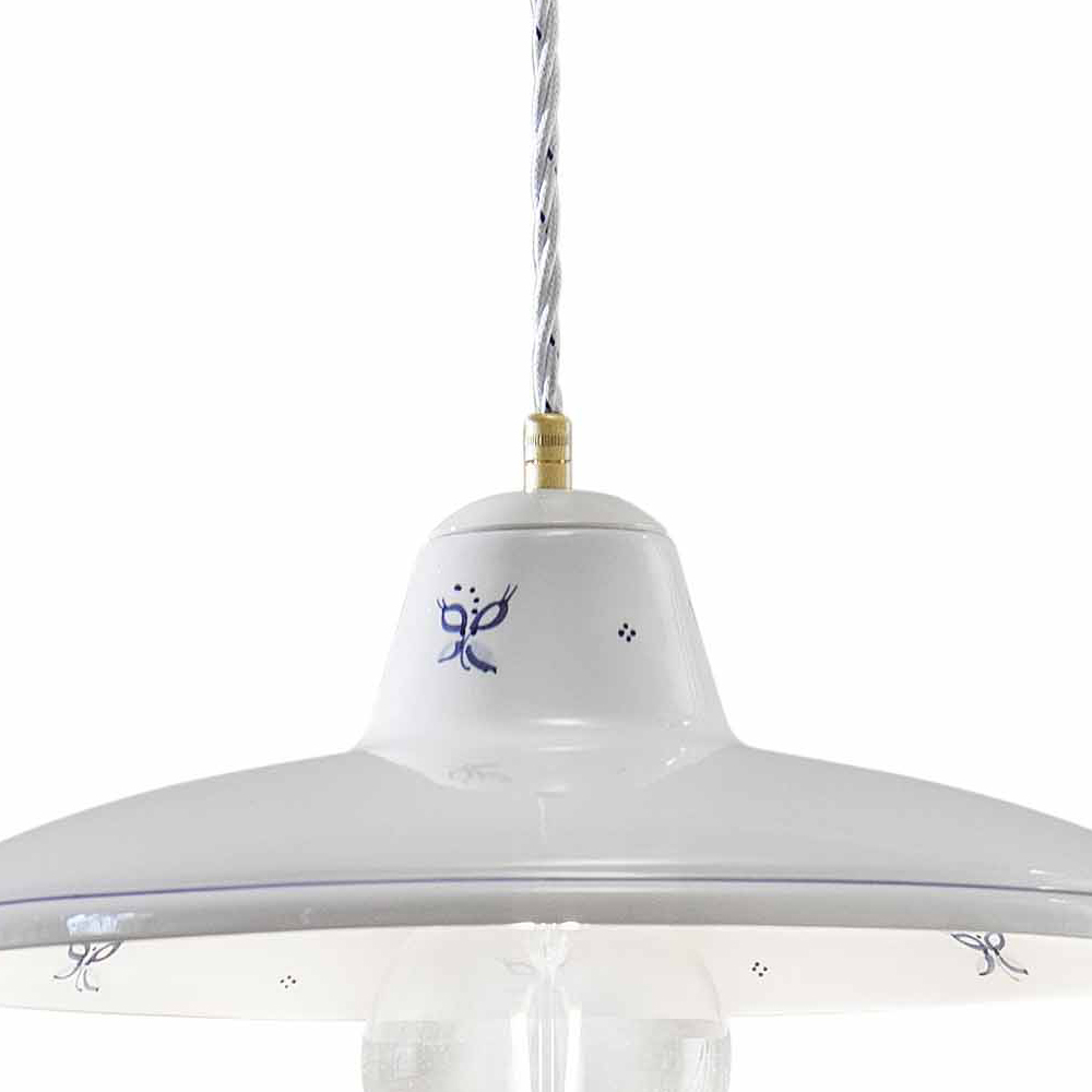 Handverzierte Pendelleuchte aus Eisen und Keramik, hergestellt in Italien von Ferroluce.
