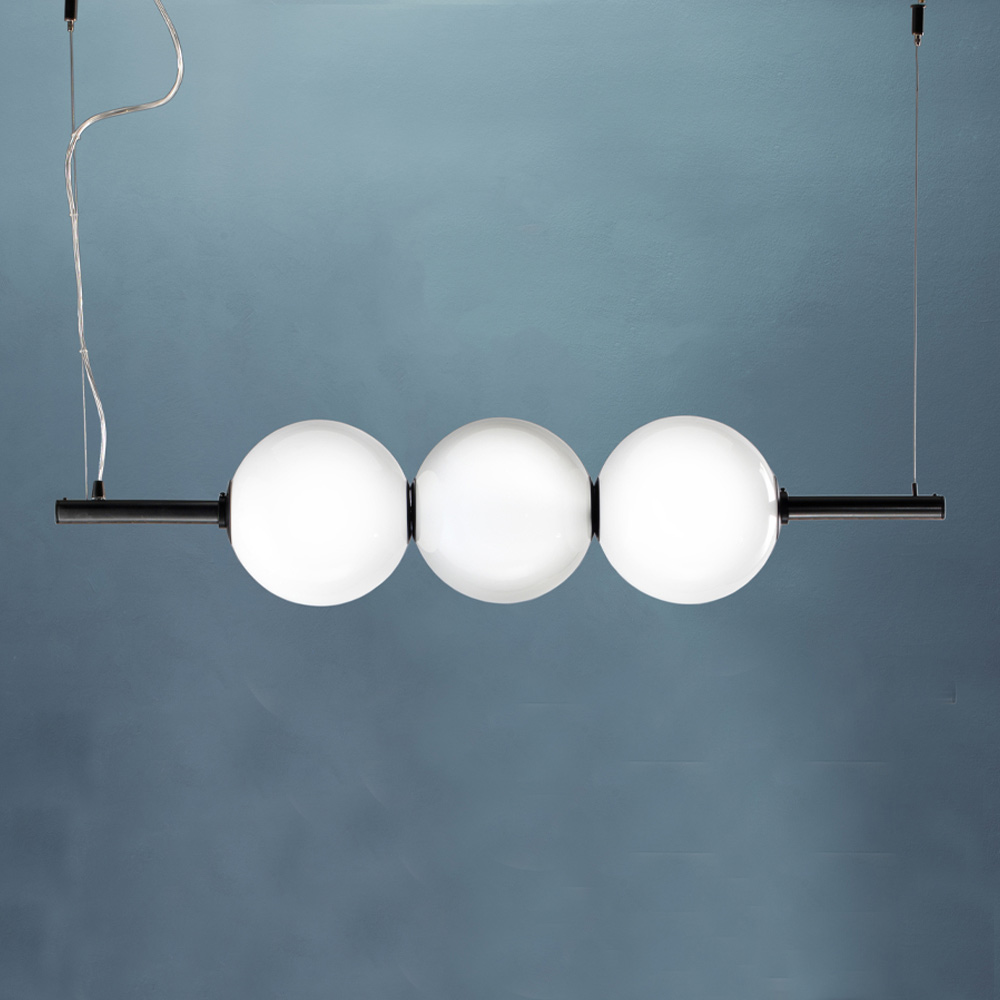 - 2 ummantelte weiße Glaskugeln, 1 ummantelte Rauchglaskugel;