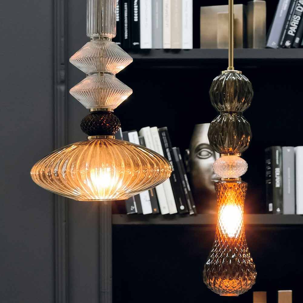 Hängelampe aus Muranoglas mit goldenen Details made in Italy.