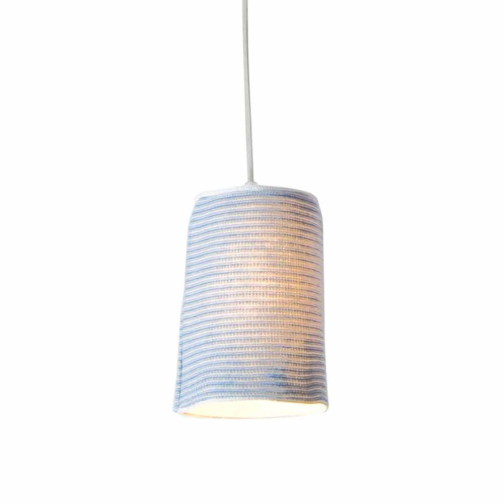 Hängelampe mit Nebulitstruktur (innovatives Material aus Kunstharz und Faser) mit einem gestreiften Wollgarn in den Farben: