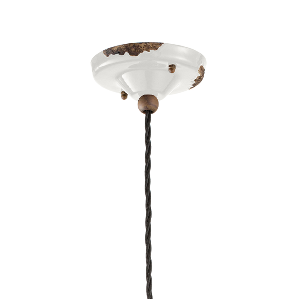 Hängelampe im Industriedesign, handgefertigt aus Keramik, Glas und Metall, hergestellt in Italien von Ferroluce.