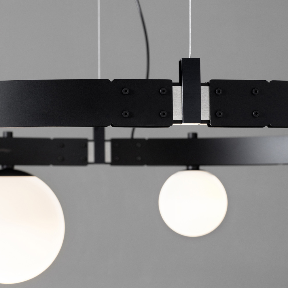 Pendelleuchte im ovalen Design aus schwarzem Aluminium mit Kugeln und Strahlern - Exodus