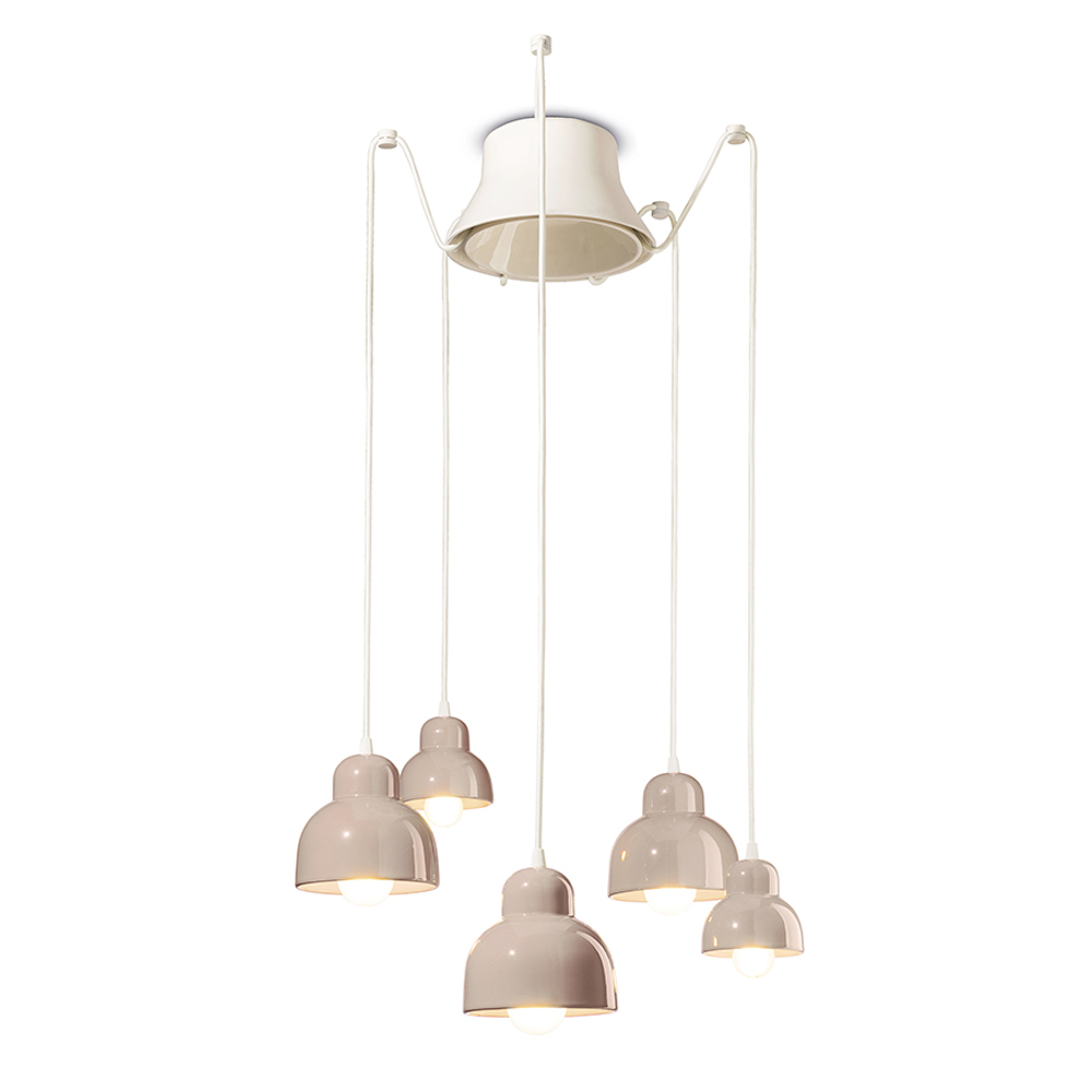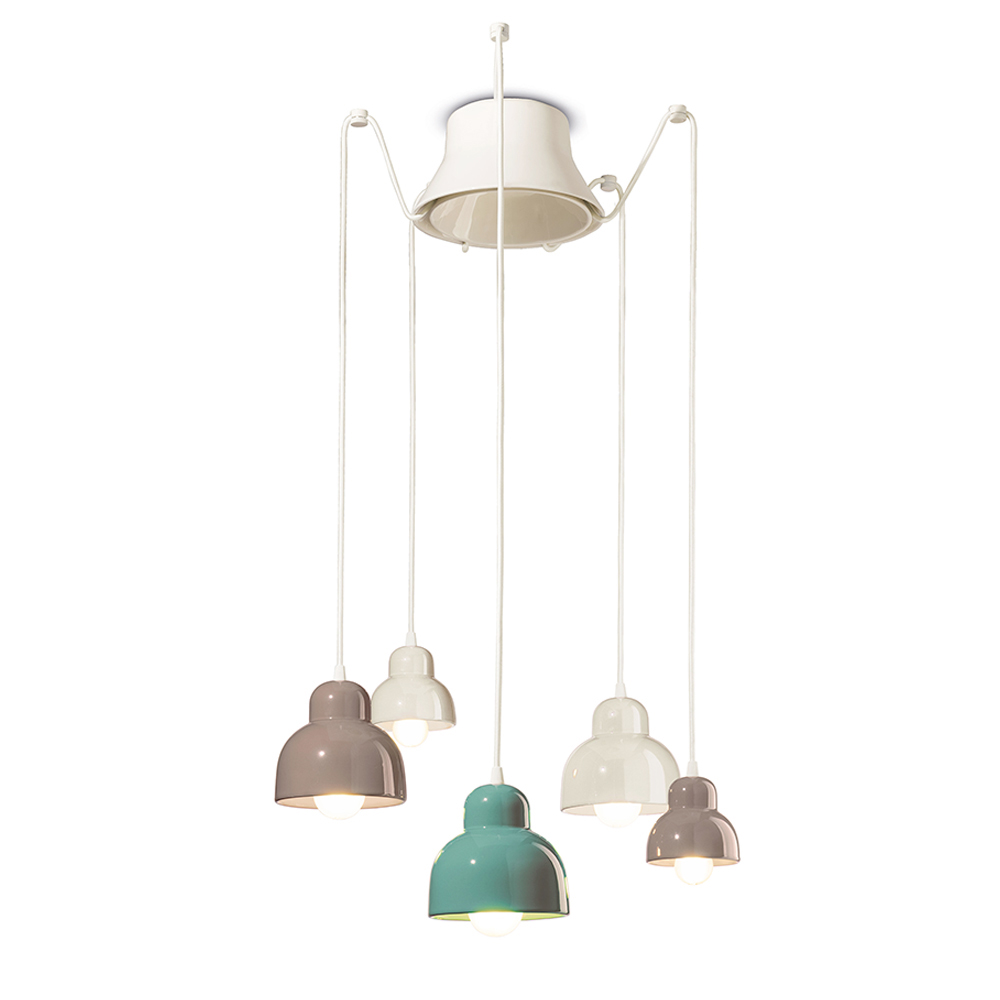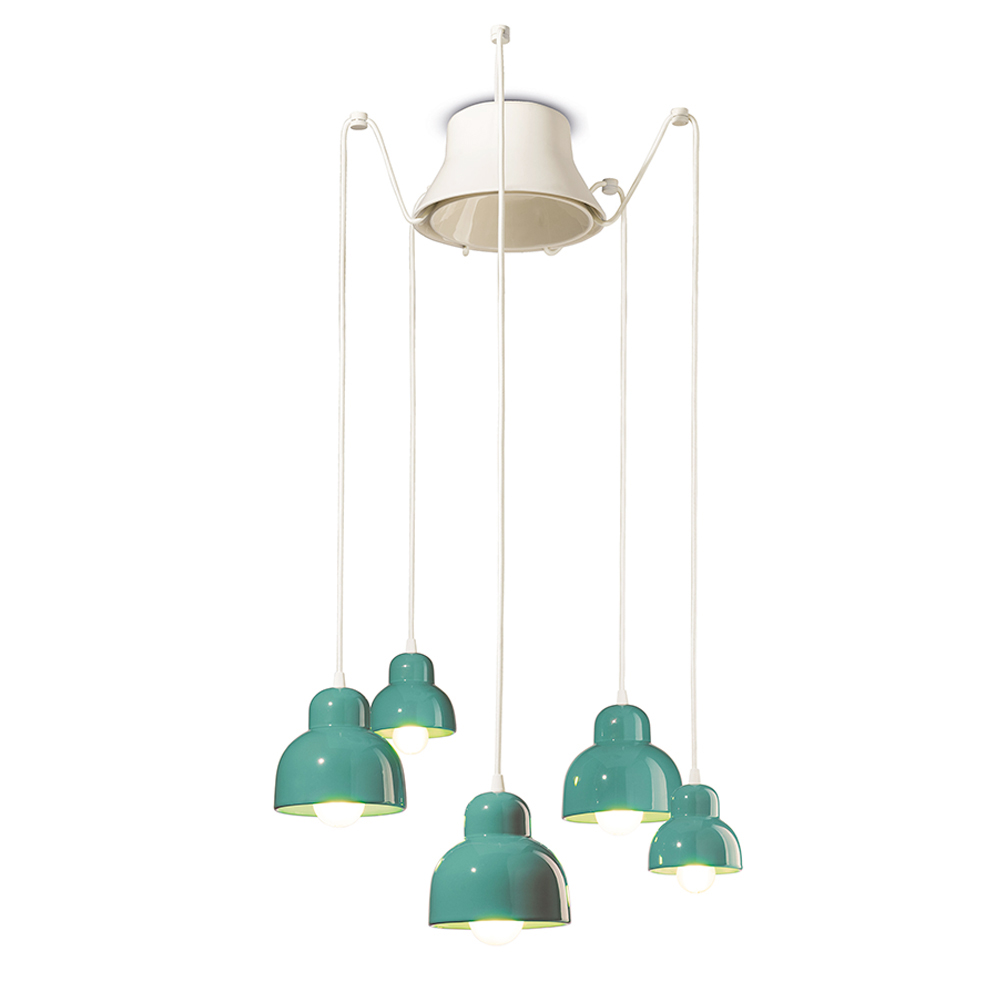 Pendelleuchte mit 5 Elementen aus farbiger Keramik , vollständig in Italien hergestellt.