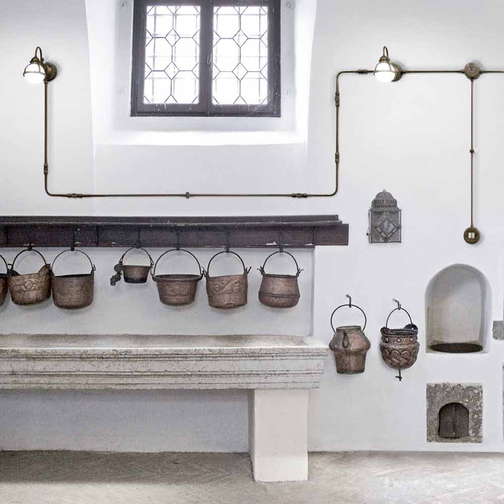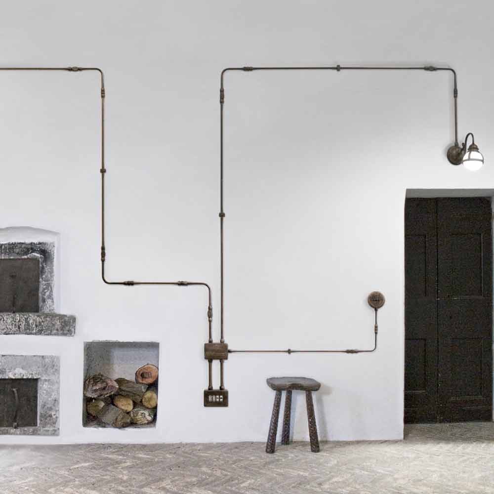 Dies sind Schalter, Armaturen, Anschlussdosen, Rohre, in denen das Stromkabel geführt wird, die mit den Lampen und Wandleuchten der Kollektion Aldo Bernardi kombiniert werden können.