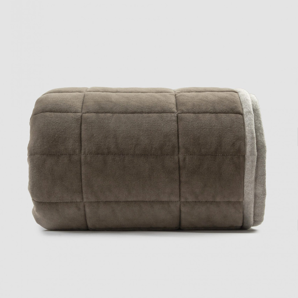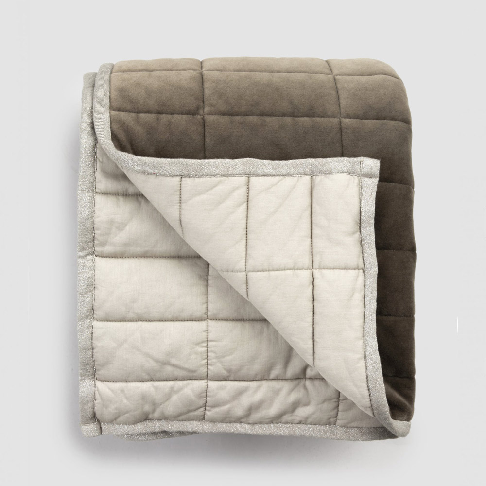 Plaid aus Baumwollsatin und Chenille mit Lurex-, Kreide- oder Retro-Bordüre - Taupe