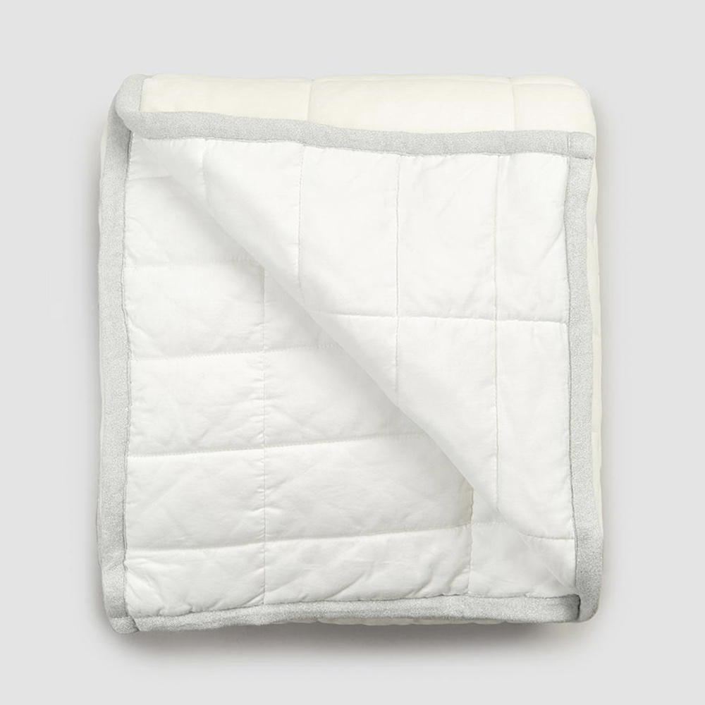 Der Wert der Tradition verbindet den modernen Lebensstil mit diesem Baumwoll-Satin und Chenille- Überwurf, der mit einer eleganten Lurex-Bordüre verziert ist.