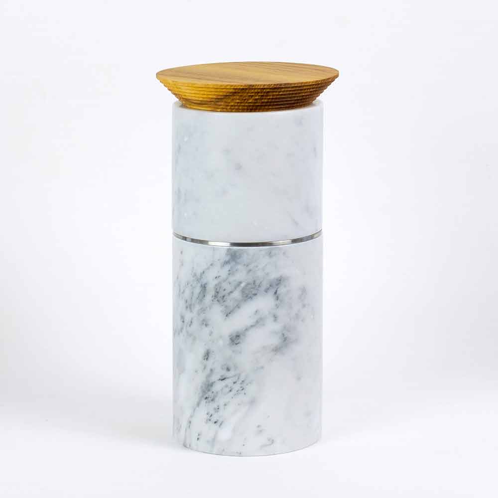 Küchenzubehör Turmkomposition aus Marmor, Holz und hochwertigem Stahl made in Italy.