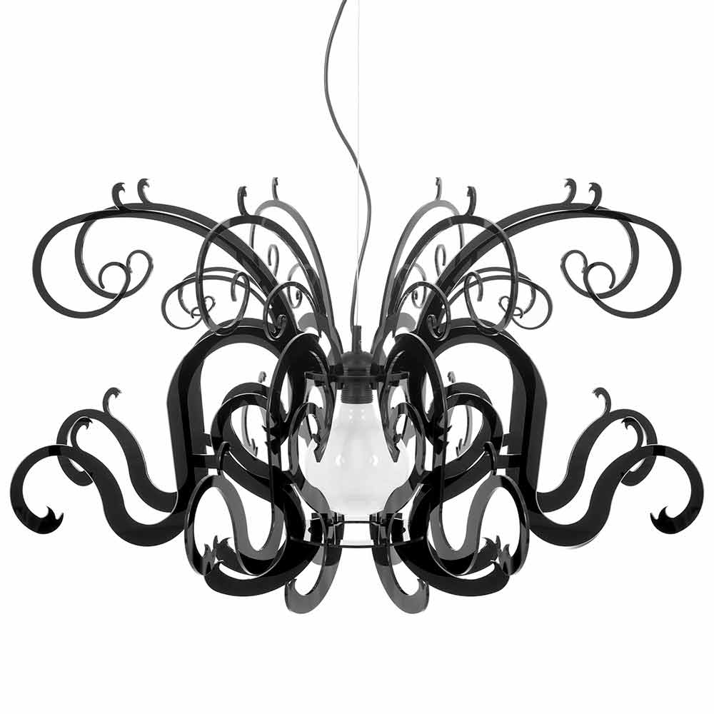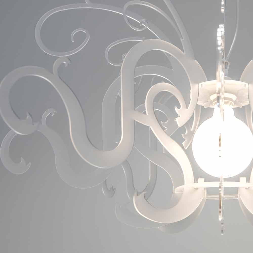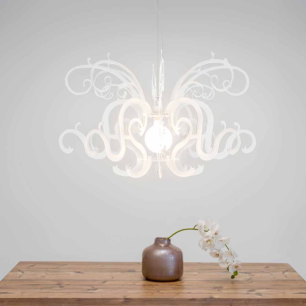 Malito ist ein majestätischer Kronleuchter aus reinem Polymer-PMMA-Plexiglas in Weiß oder Schwarz .