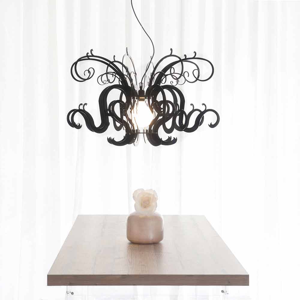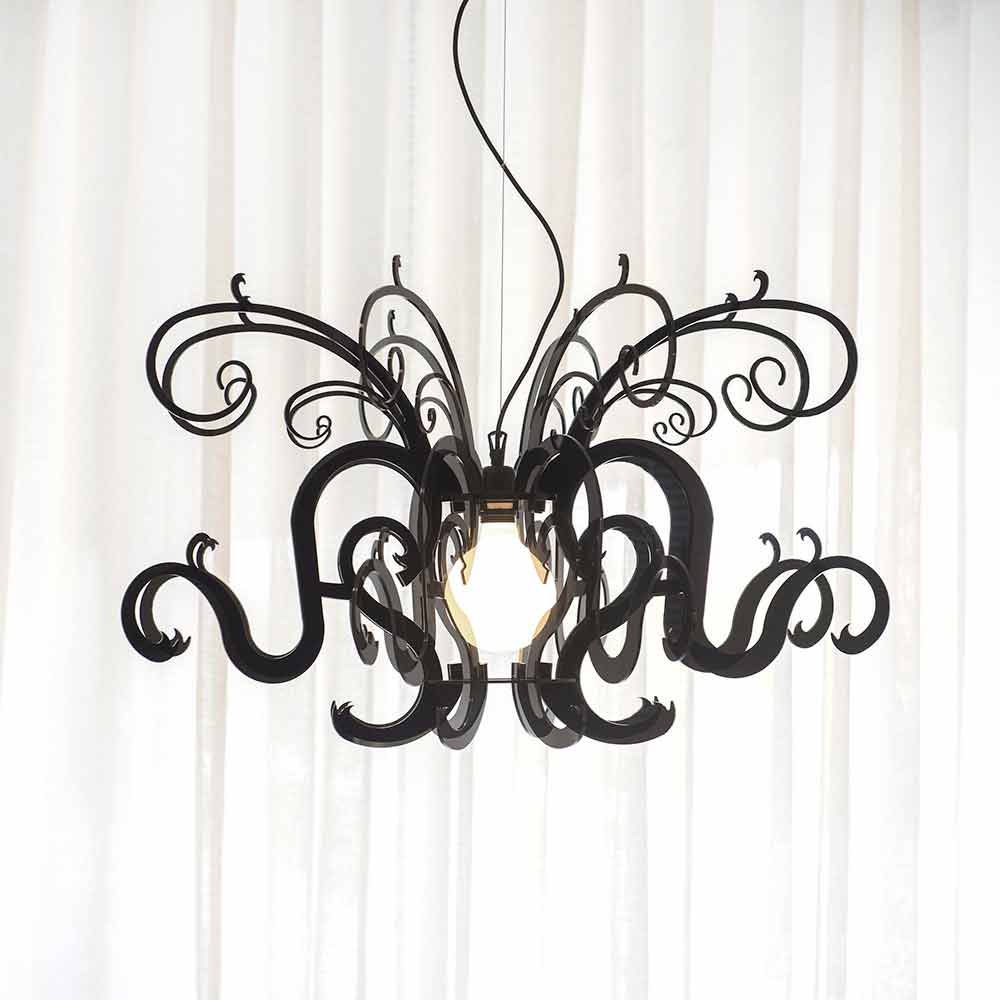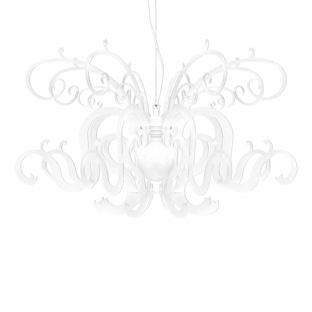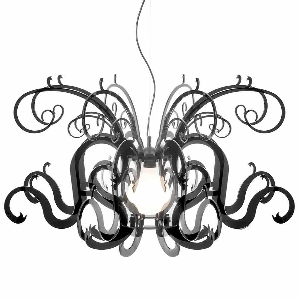 Malito ist ein majestätischer Kronleuchter aus reinem Polymer-PMMA-Plexiglas in Weiß oder Schwarz .
