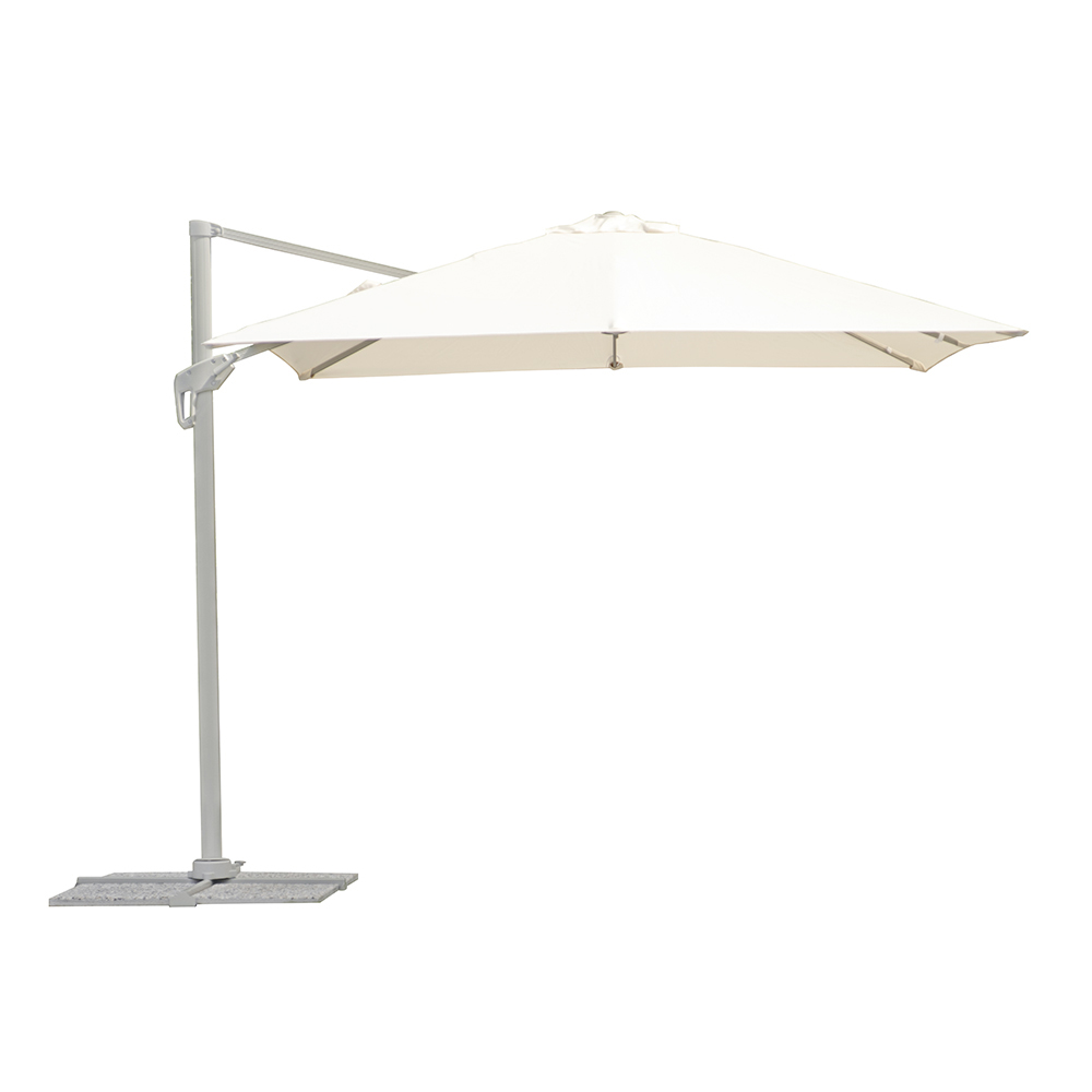 Das 250 g schwere, ecrufarbene Polyesterdach bietet hervorragenden Sonnenschutz und ist äußerst wetterbeständig. Es schafft einen geräumigen und einladenden Schattenplatz. Dank des 360° -Drehsystems lässt sich der Sonnenschirm mühelos an den Sonnenstand anpassen und bietet so stets maximalen Schutz und Komfort.