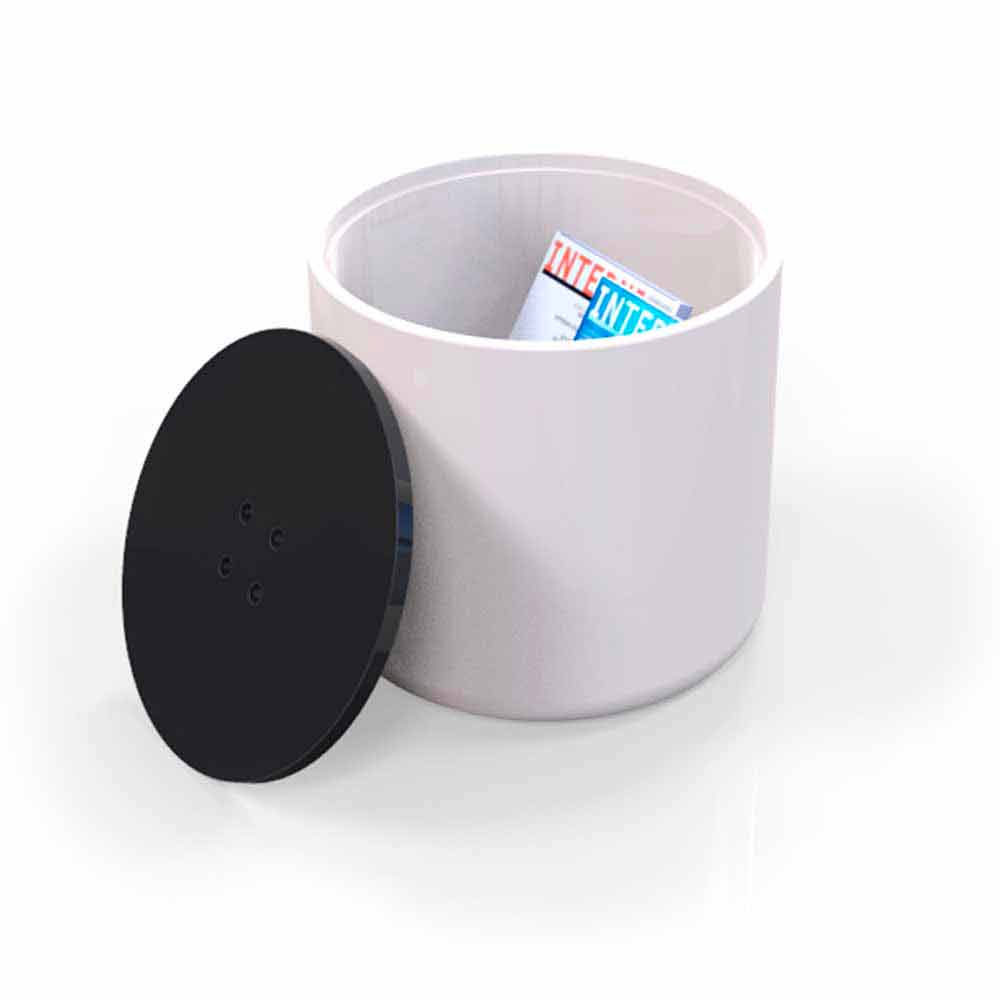 Button ist eine ausgezeichnete platzsparende Lösung, da es über ein praktisches Innenfach verfügt, das durch Entfernen des knopfförmigen Deckels zugänglich ist.