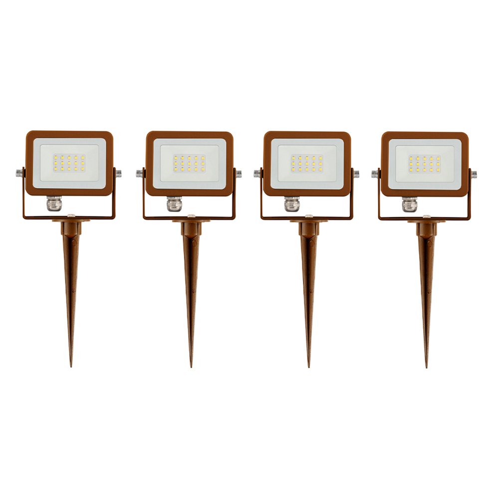 LED-Außenprojektor aus Aluminium mit Corten-Finish, 4 Stück.