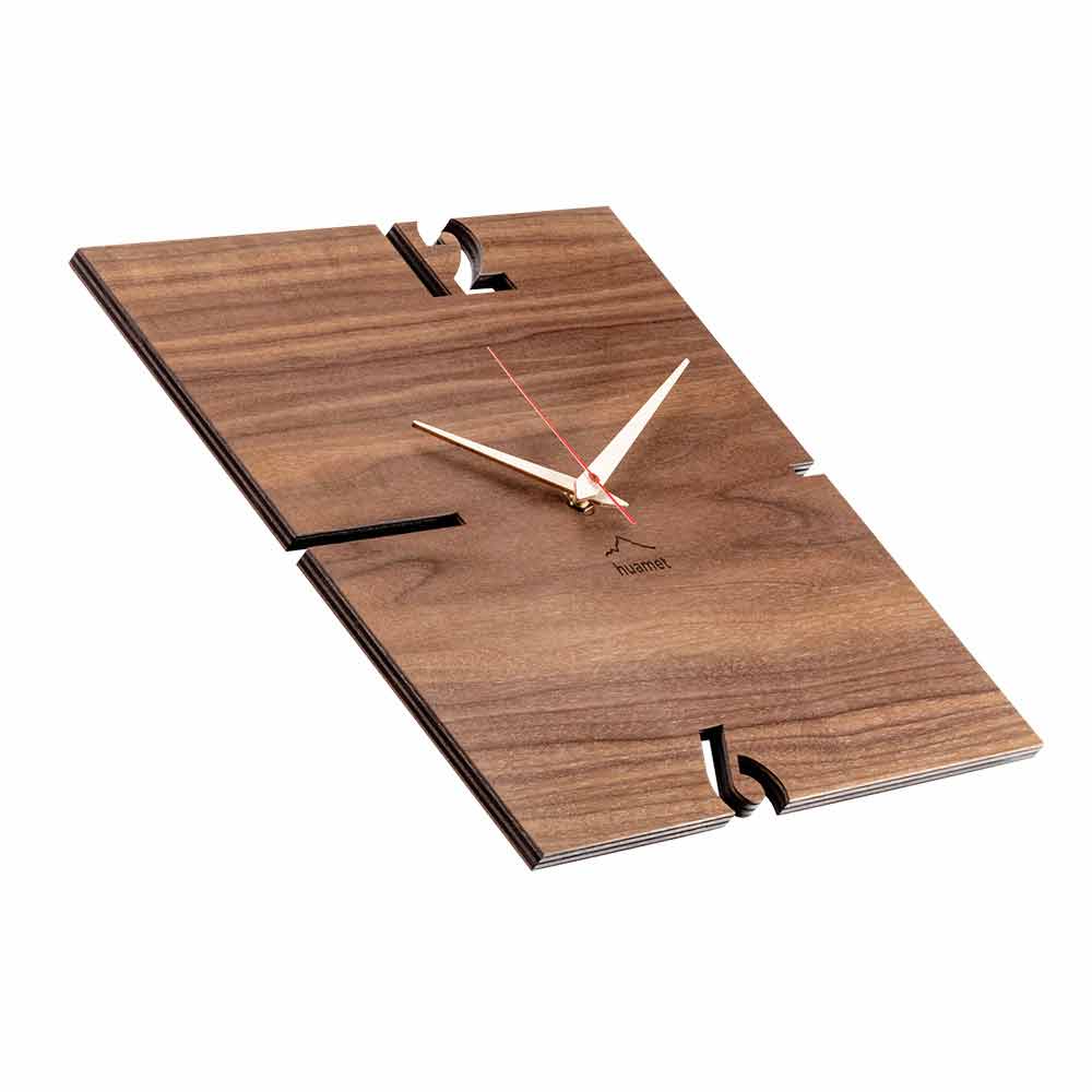 Moderne quadratische Wanduhr aus Eiche, Kiefer oder Walnuss; handgefertigt in Italien.