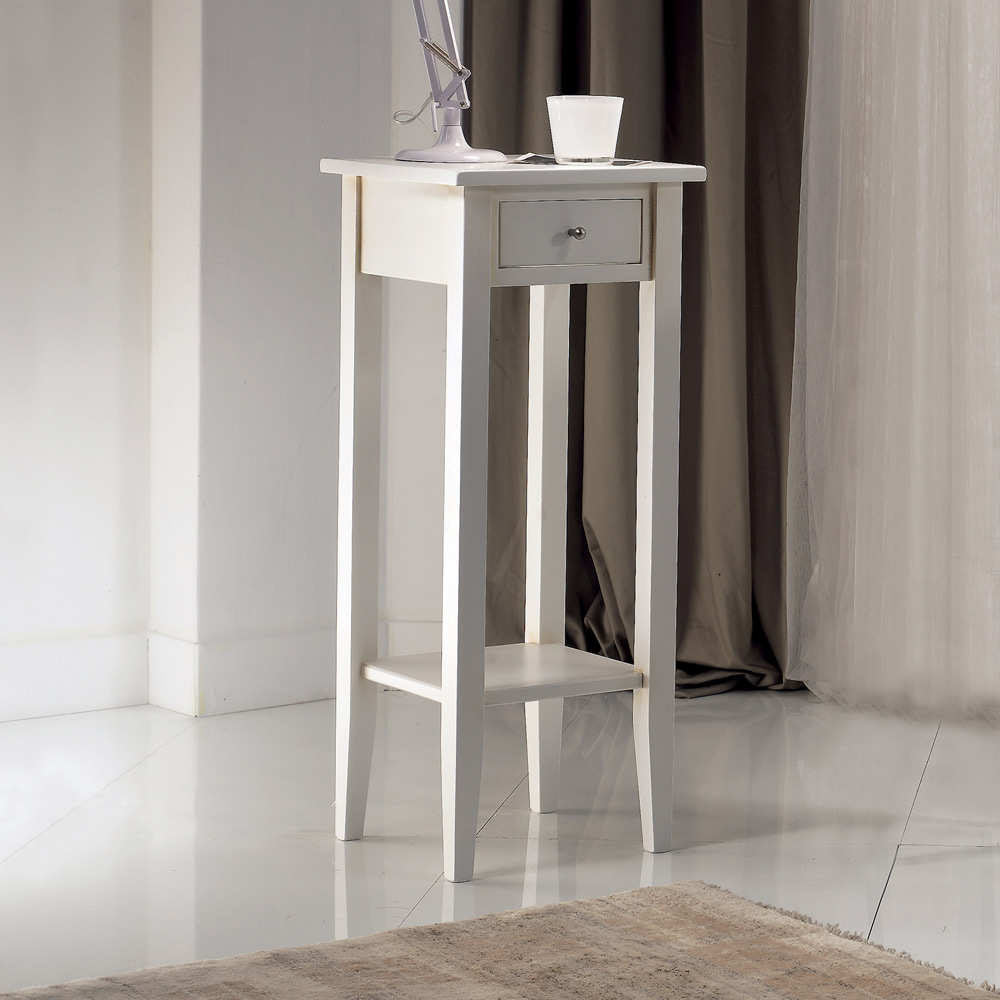 • Länge 32 cm x Tiefe 32 cm x Höhe 80 cm – weiß lackiert