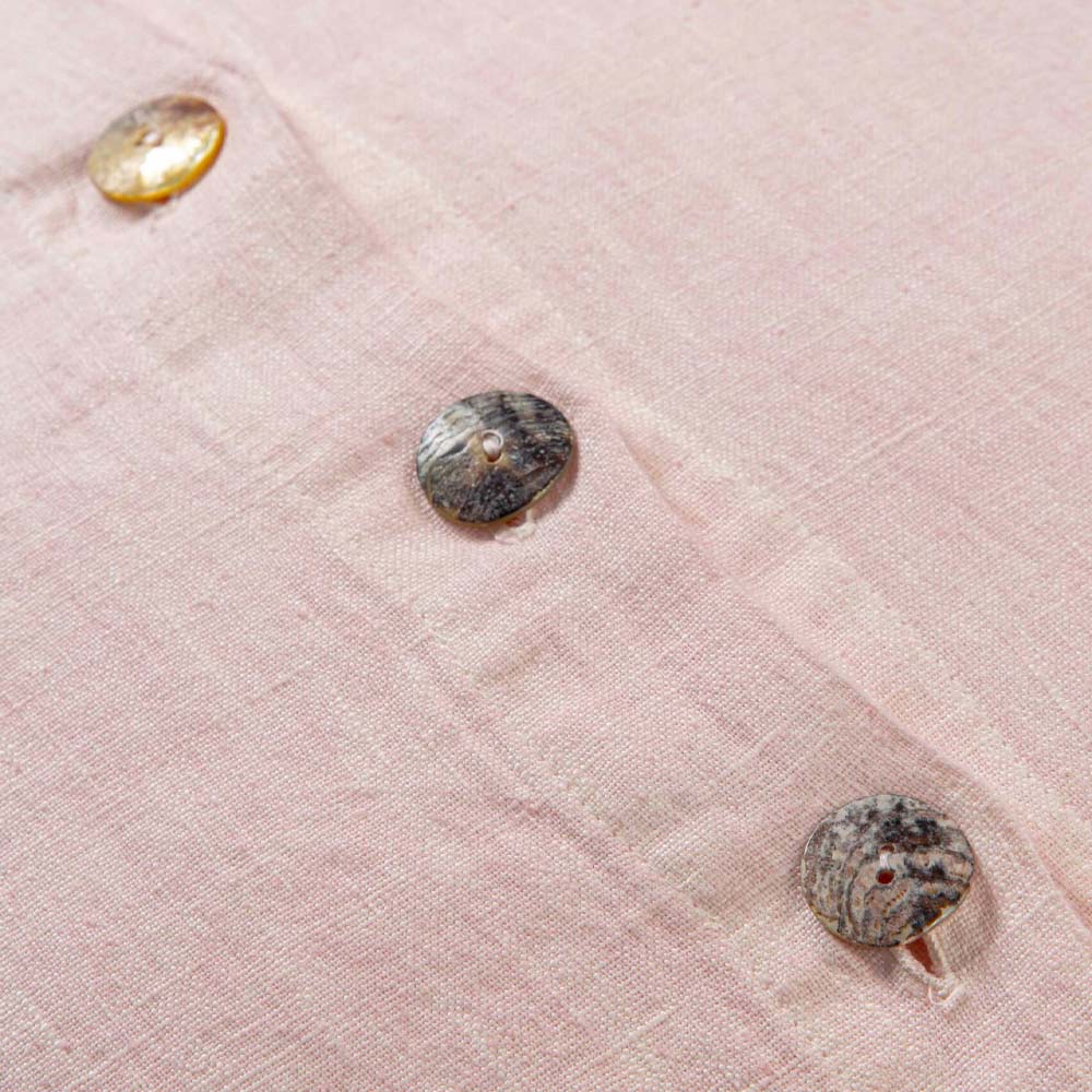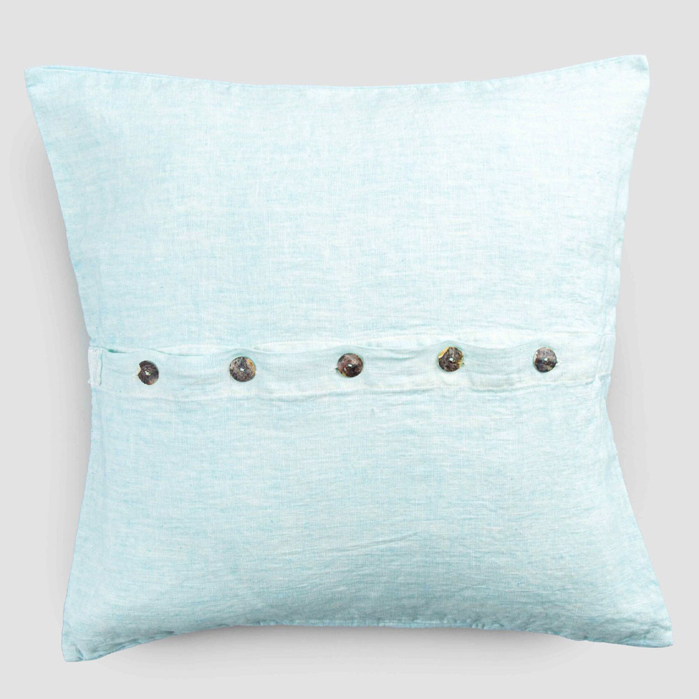 Quadratischer Kissenbezug aus farbigem Leinen mit Agoya-Knöpfen aus Perlmutt - Mittelmeer