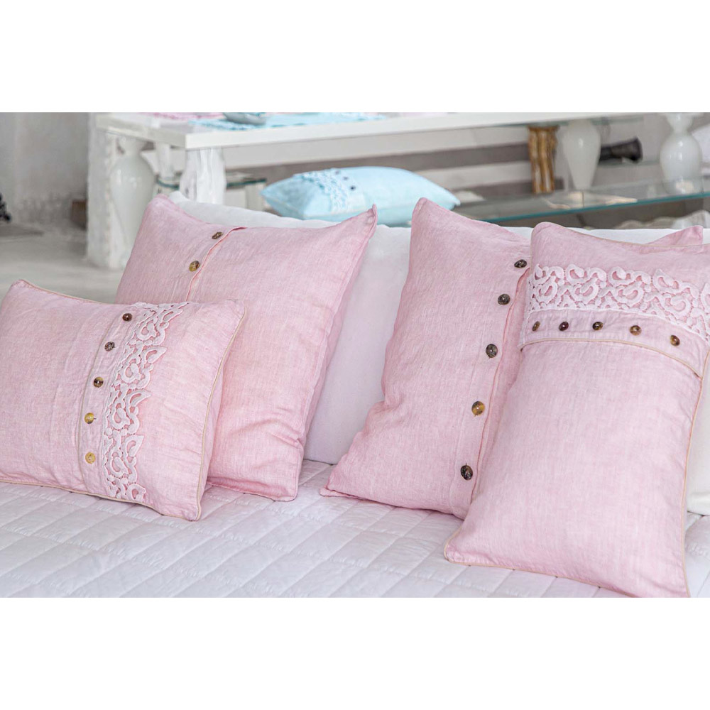 Leinen Kissenbezug mit zentralem Verschluss mit Perlmuttknöpfen, 2 Luxus-Oberflächen made in Italy.