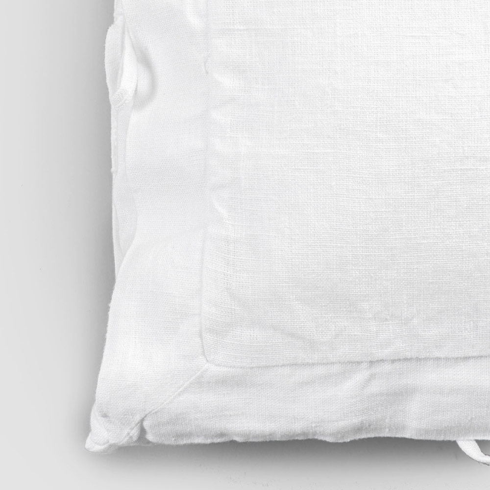 Dekorativer Kissenbezug aus weißem Leinen mit quadratischen Schnürsenkeln, hergestellt in italienischer Qualität.