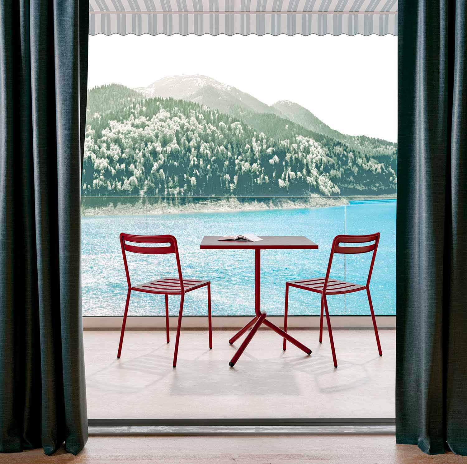 Barnabas ist ein quadratischer Couchtisch im Freien mit einem praktischen und robusten Design aus einer röhrenförmigen Metallstruktur , die die Besonderheit der ineinander verschlungenen Beine zeigt und den Couchtisch unterhaltsam und elegant macht. Das Oberteil besteht stattdessen aus Blech, das in 6 Farbvarianten und in zwei verschiedenen Größen erhältlich ist, sodass es sich an die häusliche Umgebung, aber auch an die Einrichtung von Bars und Restaurants im Innen- und Außenbereich anpassen kann. Barnabas kann auch heruntergeklappt und horizontal gestapelt werden, um Räume optimal zu optimieren.