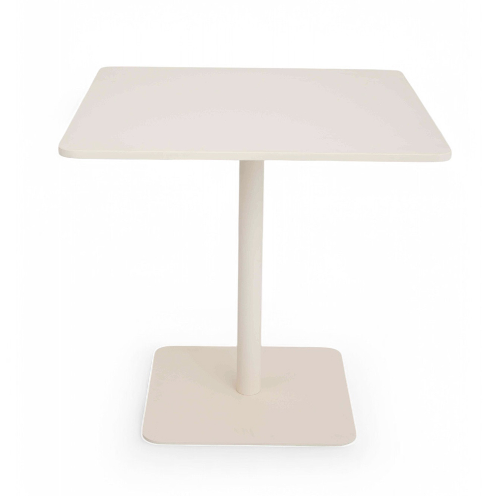 Das Gestell besteht aus pulverbeschichtetem Aluminium, einem witterungsbeständigen Material, das Langlebigkeit und Stabilität auch unter den anspruchsvollsten Bedingungen gewährleistet. Die quadratische Platte mit leicht abgerundeten Ecken verleiht dem essentiellen Design einen Hauch von Weichheit und macht ihn sowohl für einen modernen als auch für einen klassischen Stil geeignet.